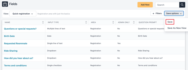 After you choose filters and columns, select Save options, then Save as New View. Enter a View Title, a helpful View Description, and Save.