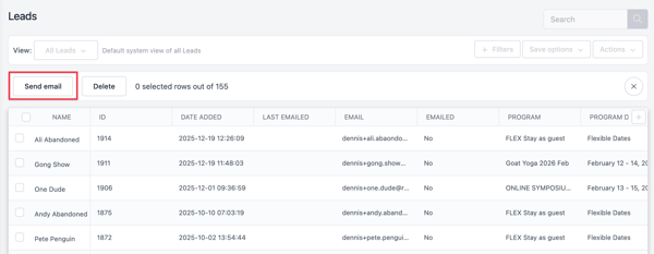 For Waitlist and Leads, you can perform Bulk Actions, like sending an email or deleting entries.